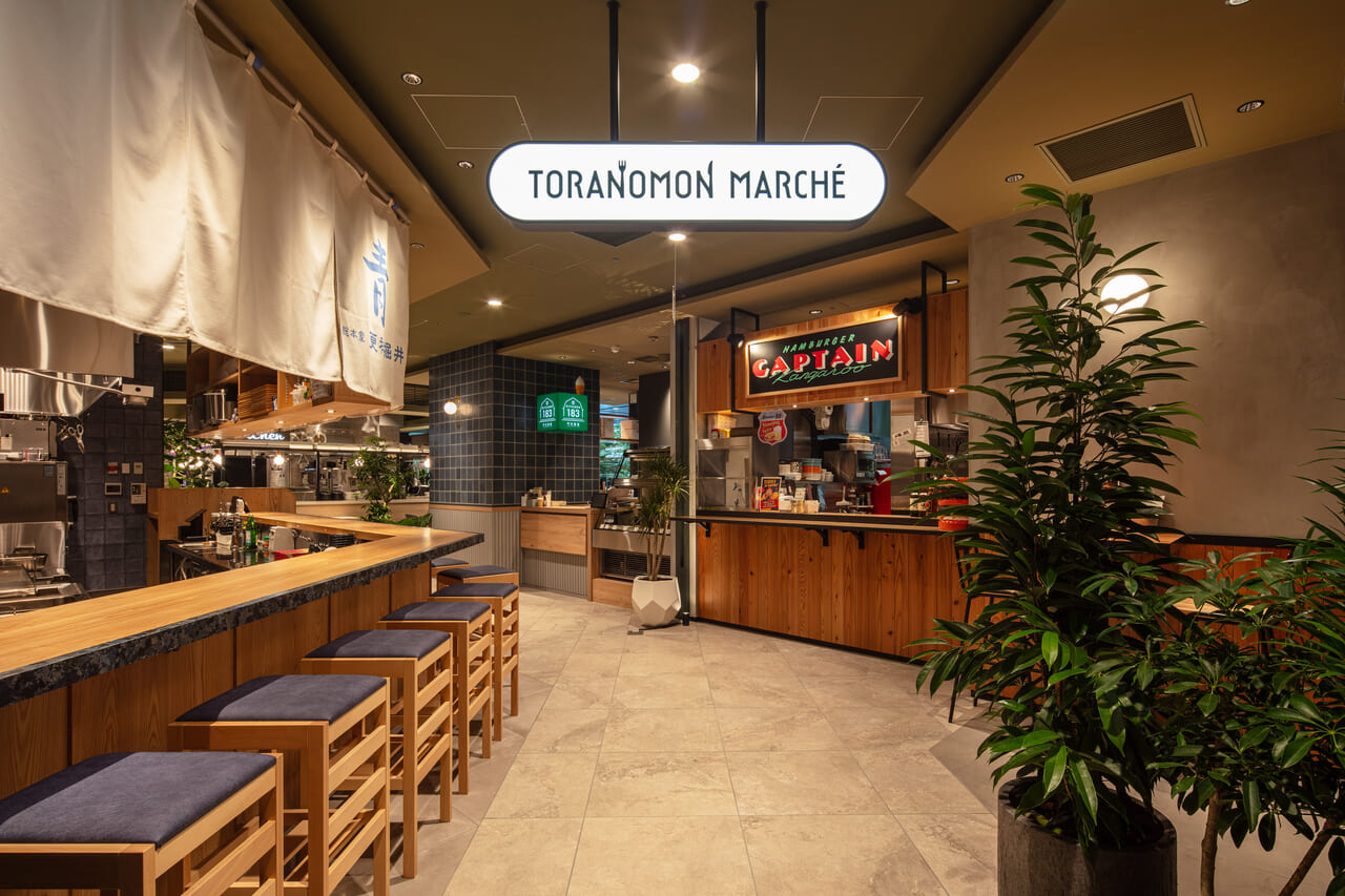 TORANOMON MARCHÉ 竣工: 2025 場所: 港区虎ノ門 用途: フードホール サービス: 総合プロデュース・施設デザイン:街制作室株式会社、設計協力:キナリト、施工:JPDH co.,ltd.